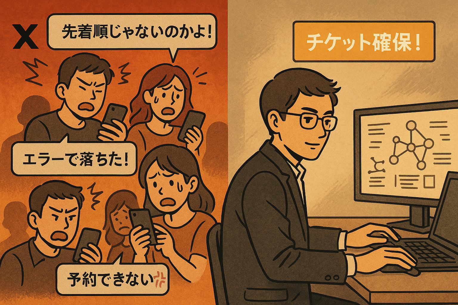 この予約システムの欠陥の本質を見抜いて、最も有利にチケットを取れる方法を彼は見つけ出したわけです。