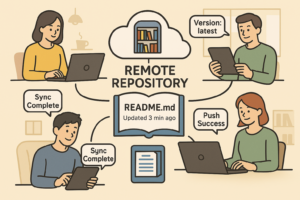 リモートリポジトリは、Gitリポジトリのオンライン版です。これは、図書館が提供するデジタルコピーのようなものです。複数の利用者が同時にアクセスでき、最新の情報を共有することが可能です。リモートリポジトリを利用することで、チーム全体が同じプロジェクトの最新状態を保つことができます。