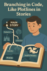 ブランチは、メインの開発ラインから分岐して別の作業を行うための仕組みです。これは、一つの物語に複数のサブプロットが存在するようなものです。メインプロット(main branch)を進めながら、別のサブプロット(feature branch)で新しいアイデアや変更を試すことができます。これにより、メインのストーリーに影響を与えることなく、新しい展開を試みることができます。
